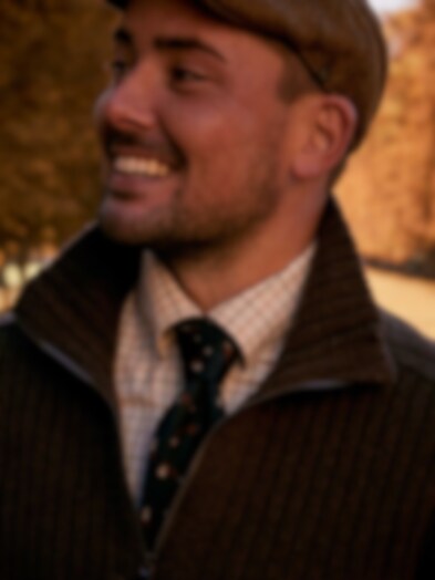 Jacquardgewebte Krawatte aus Seide mit einzigartigen Jagdmotiven. Die Jagdkrawatte ist in einer schönen Geschenkbox verpackt.